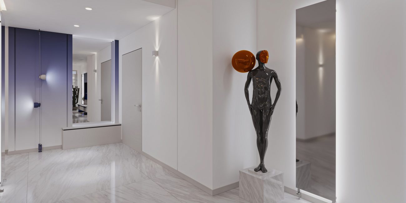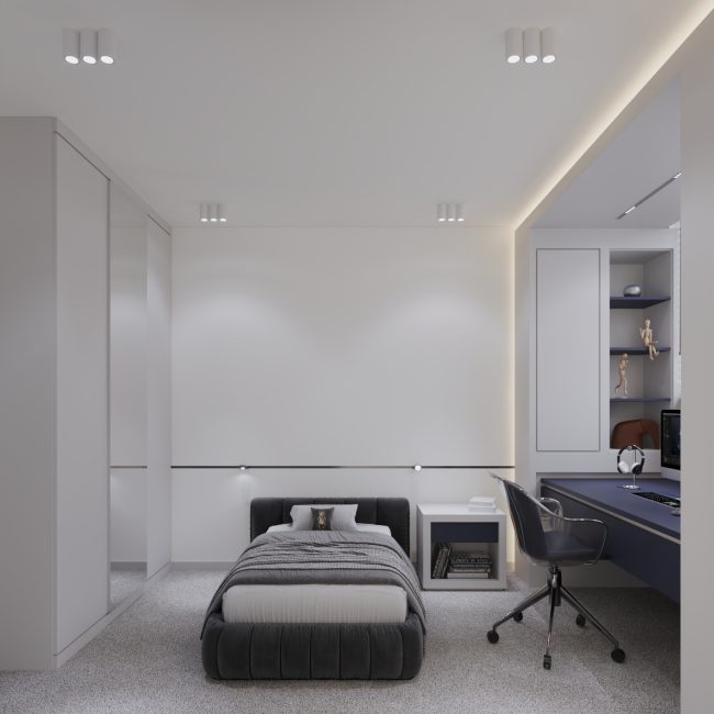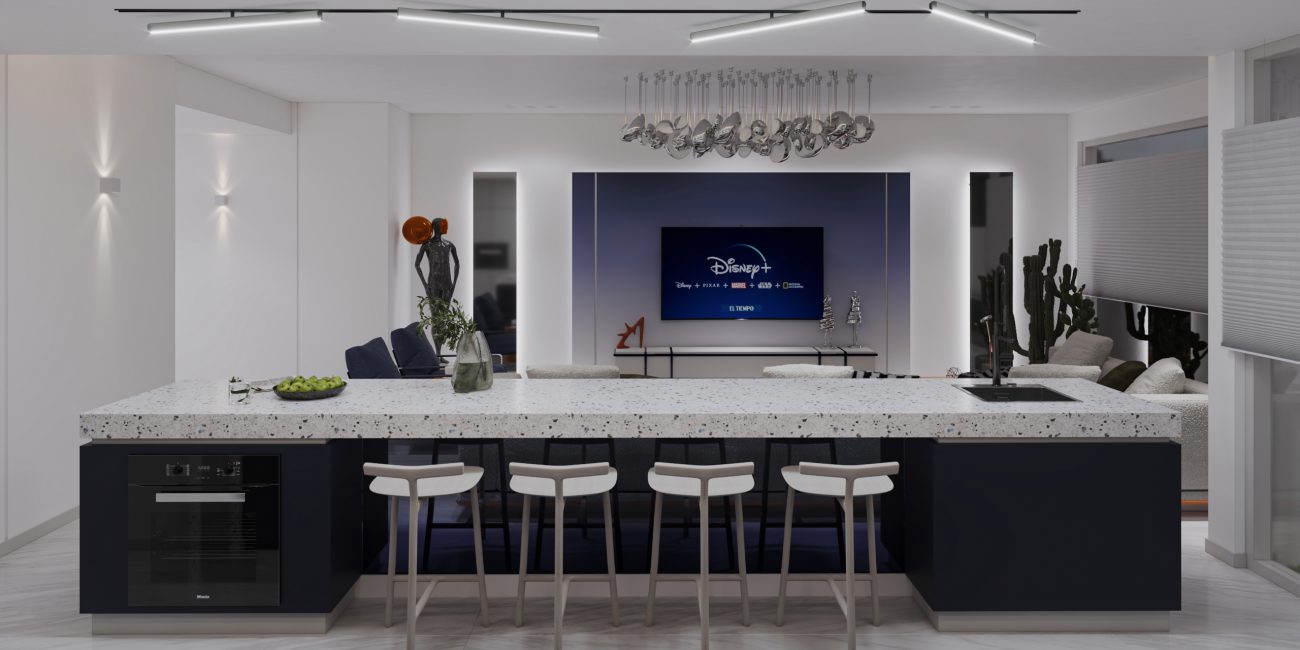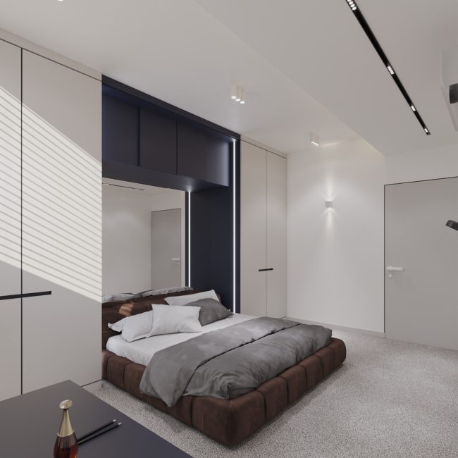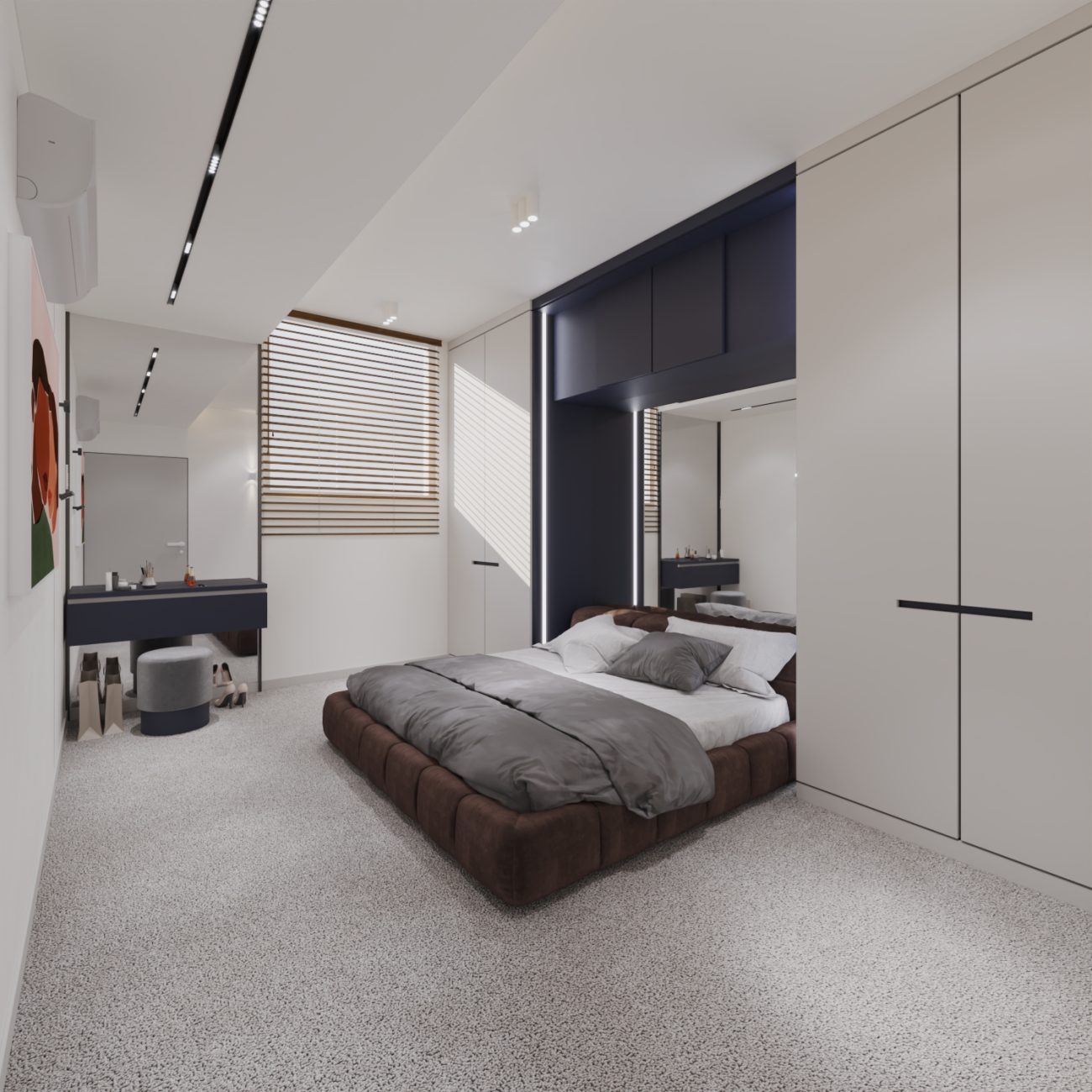 Located on the 10th floor at the edge of the city, this apartment offers stunning mountain views and a calm escape from urban bustle. Large windows frame the landscape, while a neutral, airy interior palette enhances the sense of elevation and serenity. The design blends modern comfort with nature’s quiet presence.